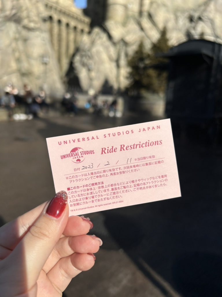 USJ(ユニバーサル・スタジオ・ジャパン)でもらえる、ライド リストリクションズカード